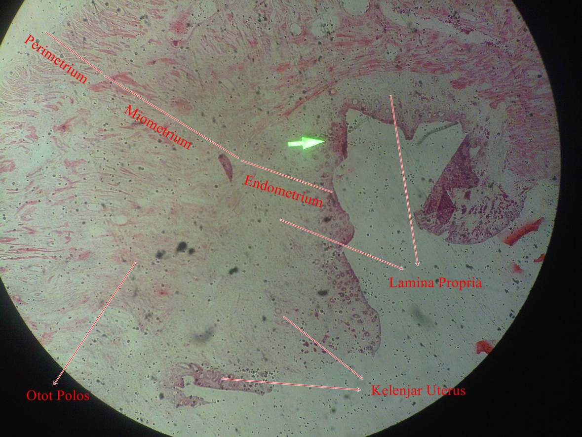 Dari pengamatan mikroskopis, kita dapat melihat bagian-bagian dari sel ovarium, sel oviduk dan sel uterus.